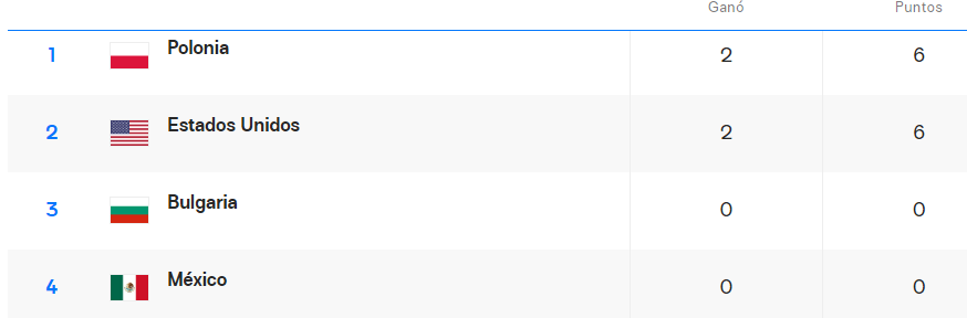 [30/8] Polonia – Estados Unidos, para definir el ganador del Grupo C.