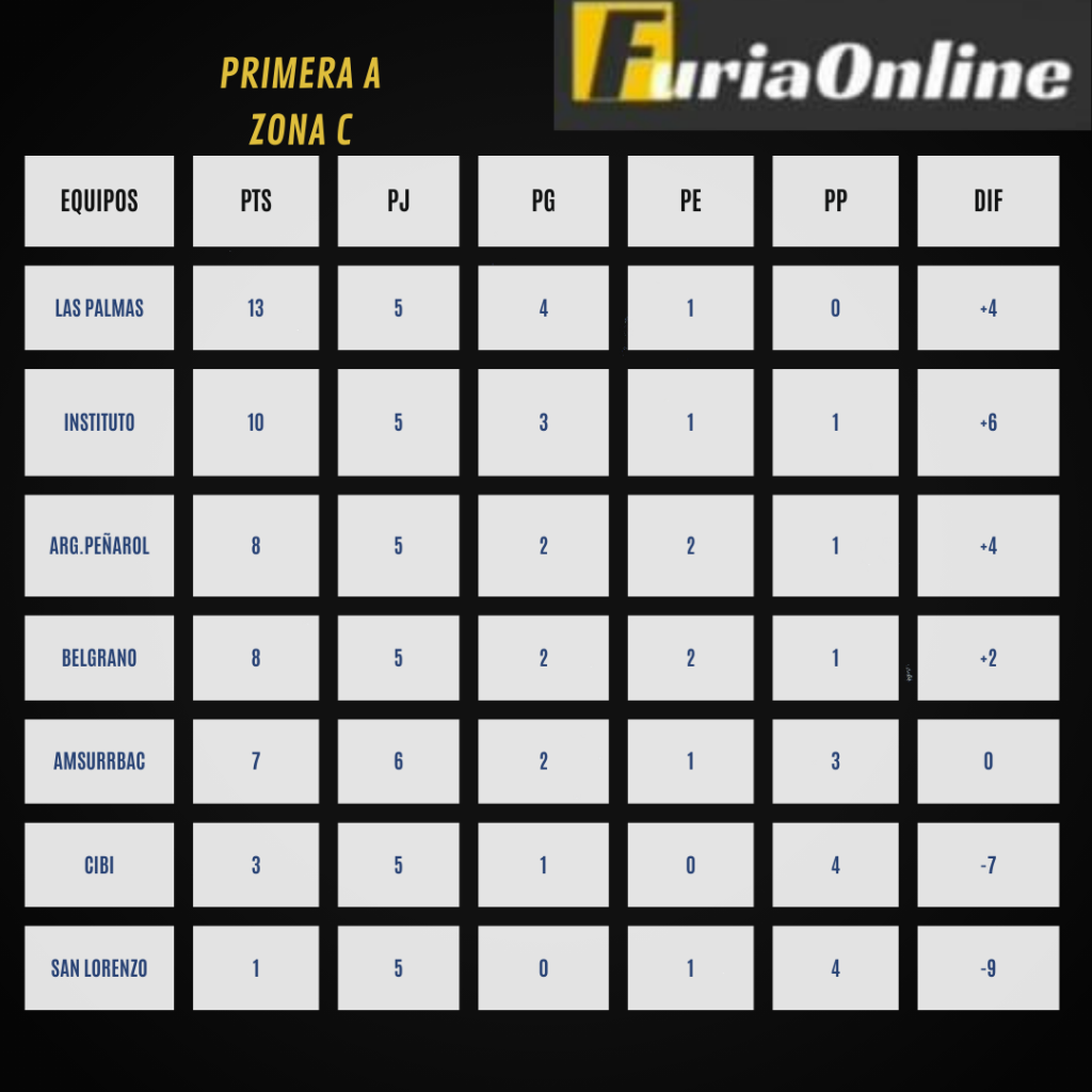 La Primera A este sábado termina la primera vuelta de torneo complementario. El mismo se compone con los 21 equipos que conforman la máxima categoría de La Liga Cordobesa divididos en 3 zonas de 7 equipos, donde los primeros de cada zona clasifica a semi finales donde el campeón del apertura Las Palmas espera a los rivales para disputar el campeonato anual.