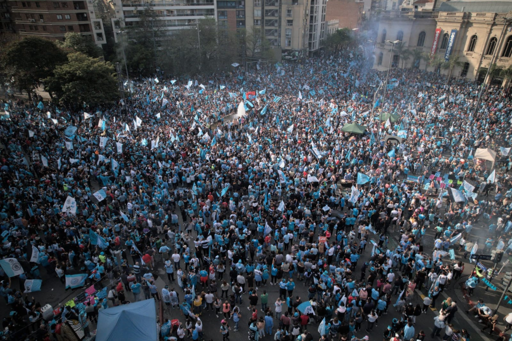 Con el pitazo final de Arasa, caravanas celestes inundaron la ciudad con puntos de encuentro en el Patio Olmos y en las afueras del Julio César Villagra.