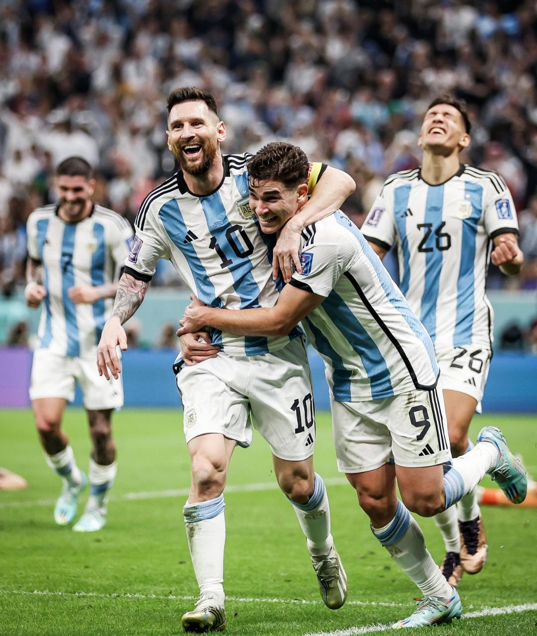 Argentina llegó al tercero, después que Messi recibió por derecha y se llevó a los dos excelentes marcadores centrales croatas, desbordó como un viejo wing, con derecha asistió a Julián para que anotara el tercero. Excepcional lo del pibe de Calchín, el mejor jugador del equipo después de Messi.