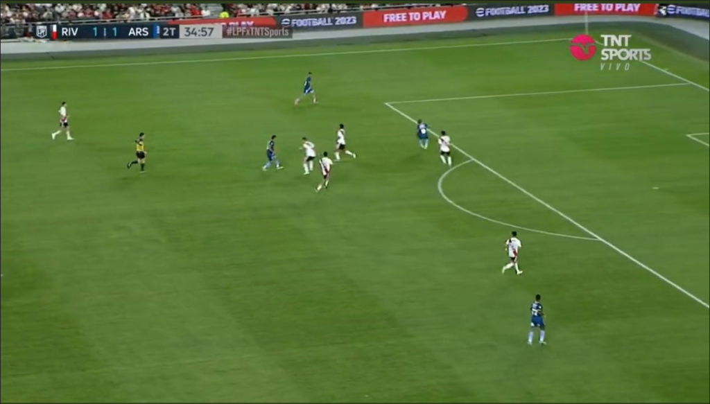 Con un equipo que comenzaría ganando tan solo a los 7′ PT con gol de Jose Paradela, se podia vaticinar un panorama comodo para una goleada o resultado abultado, que jamás llegaría. Por el contrario, el equipo de Sarandí no sufrió el golpe del primer gol y comenzó a atacar con mucha voracidad, además de llegar con mucha gente al area rival. En un partido de ida y vuelta, Demichelis realizaría 3 cambios en simultaneo a los 15′ ST, con el ingreso de Borja, Palavecino y De La Cruz. Tan solo un minuto después, Palavecino recepcionaria de espaldas su primer pelota rebotado de primera a los pies de Santiago Paiva, quien sufriría el penal en el intento de Franco Armani por despejar. Desde ese momento, River entraría en un caos. Un desorden en el cual no esta acostumbrado a desenvolverse, si no al contrario, que lo hace exponer sus dudas, falencias de funcionamiento , impresiciones, y la falta de eficacia a la hora de resolver situaciones, pese a haber tenido 3 delanteros en cancha en gran parte del partido. Con un Salomón Rondón incomodo y pesado desde lo físico, el ingreso de Borja no haría más que generar una sobre población de gente en ataque que no serviría de nada.