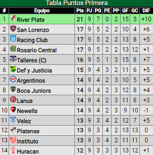 Así se encuentra la tabla de posiciones transcurridas 9 fechas.
