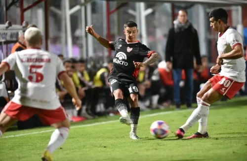 Así mismo, los de Eduardo Domínguez mantuvieron su esquema y fueron fieles a su estilo, 3 centrales fijos encargado de dar vuelta la pelota, 2 carrileros con idas y vueltas constantes y un medio sobre poblado para la transición de balón de un sector hacia el otro horizontalmente; logró ingresar al área defendida por Roffo (Debut en Alta Cba) sin ocasionar tanta peligrosidad.