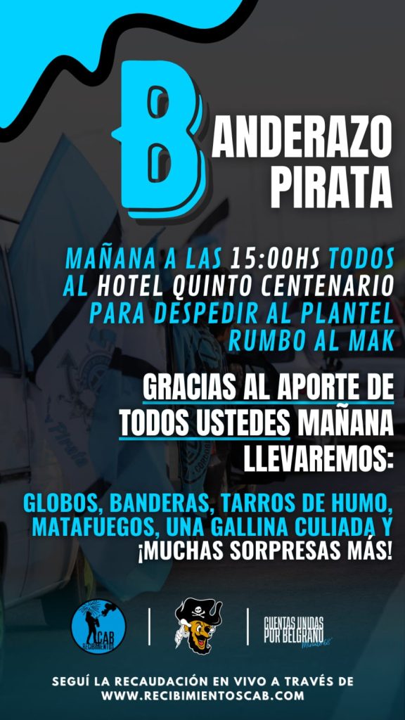 Los hinchas Piratas organizaron un banderazo para despedir el equipo en El hotel Quinto Centenario (ex Sheraton), Duarte Quiros 1350. Nuevo centro Shopping.