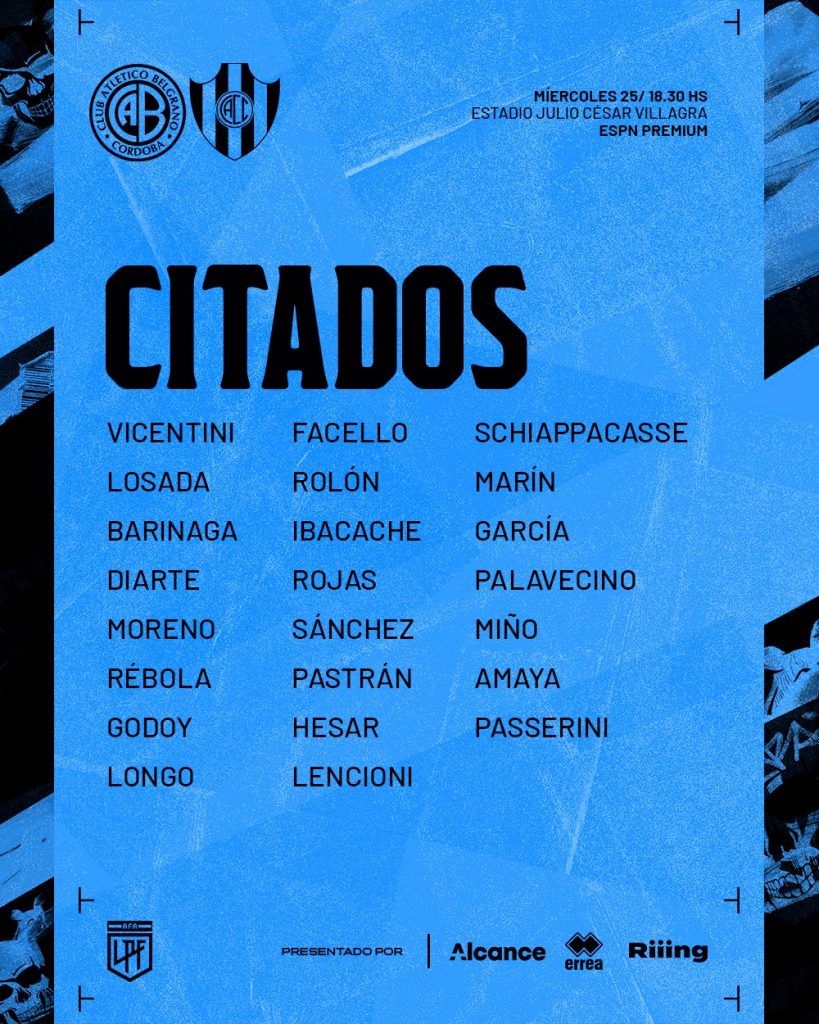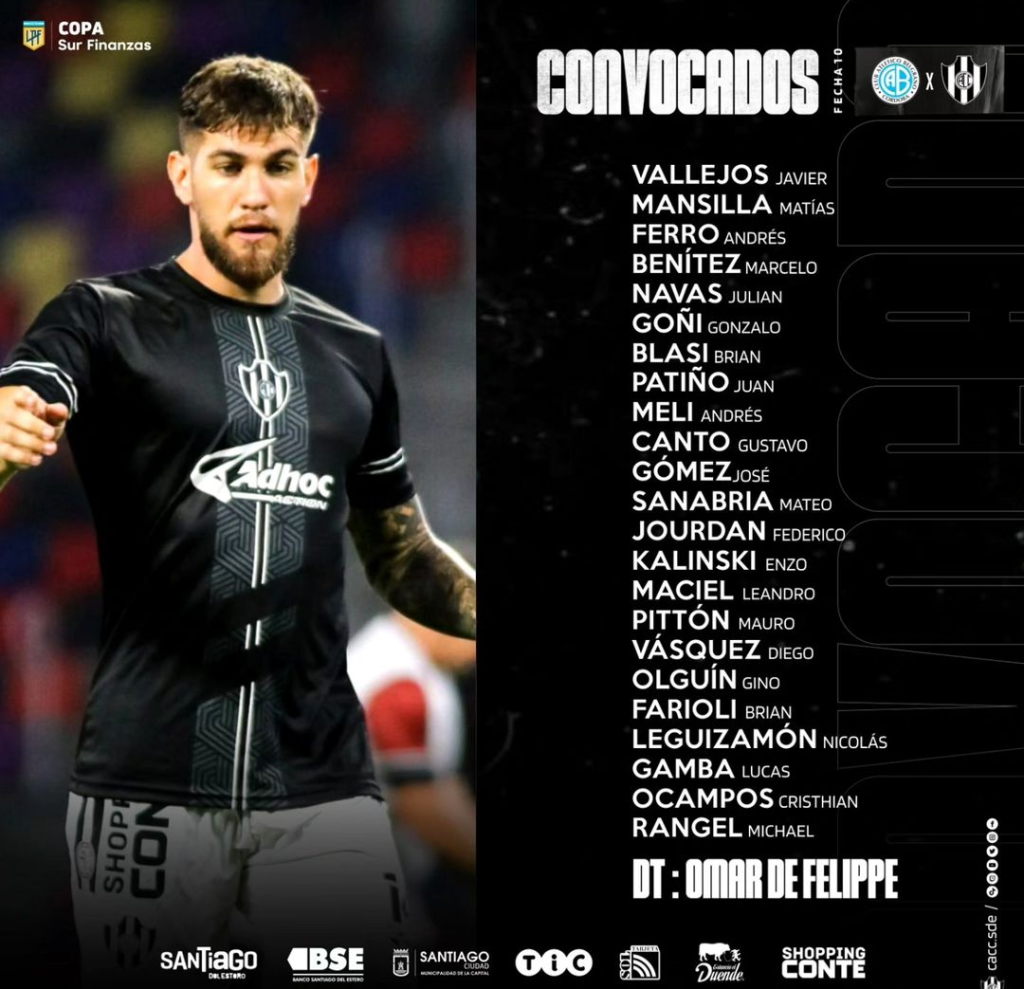 El conjunto santiagueño llega a este encuentro con un par de variantes por lesión: Lucas Gamba por “Pulga” Rodríguez (desgarro del semitendinoso pierna izquierda) y Brian Blasi por Sebastián Valdez (contractura). También se encuentran lesionados Leizza (desgarro) y Miloc (sinovitis).