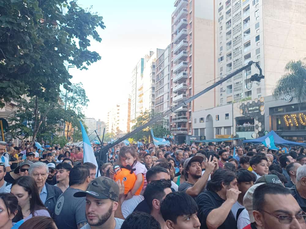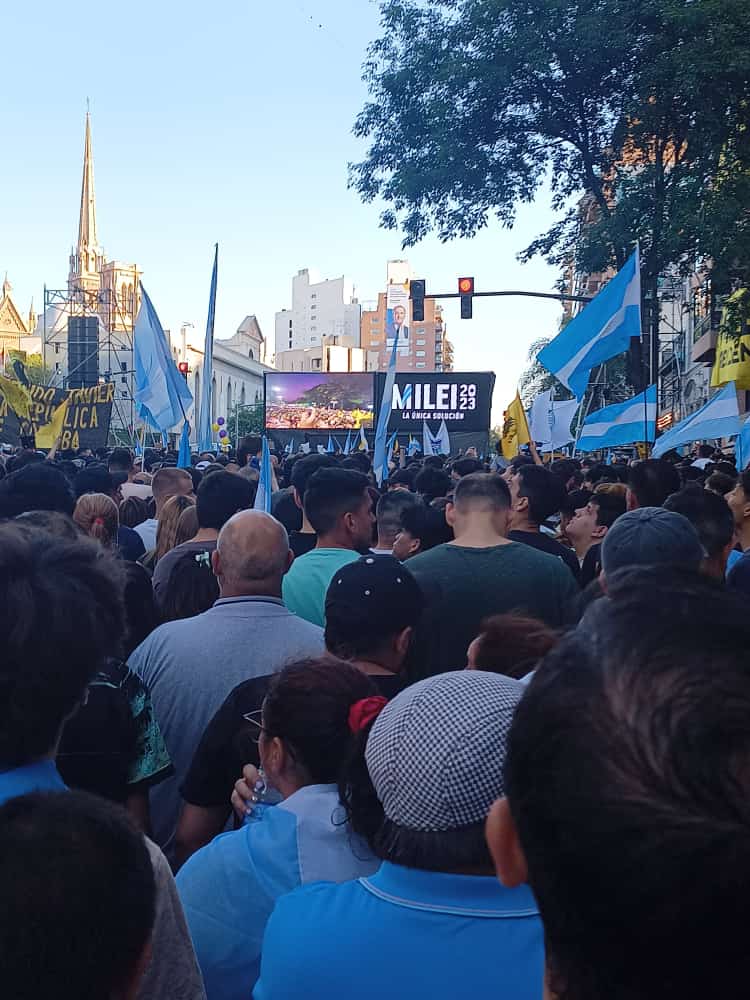 Javier Milei está encabezando su cierre de campaña en Córdoba en las calles Hipólito Yrigoyen y Obispo Trejo, de la capital y lo hace ante una gran multitud de 9 mil simpatizantes aproximadamente.
