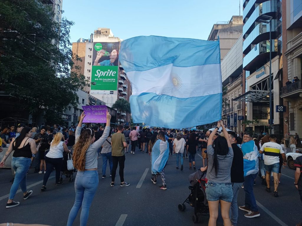 En la concentración se pudo ver carteles que decían ” CORDOBA TIENE MEMORIA Y TE APOYA”, “Vota sin miedo, vota con esperanza”, gente en los balcones de los edificios con banderas, jubilados y gente emocionada por tal discurso.