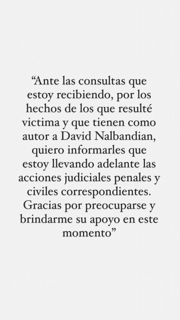 El abogado de Torrado afirmó que se solicitó una orden de restricción contra Nalbandian y que ella se mudó porque donde habitaba no contaba con la seguridad que necesita para sentirse protegida.