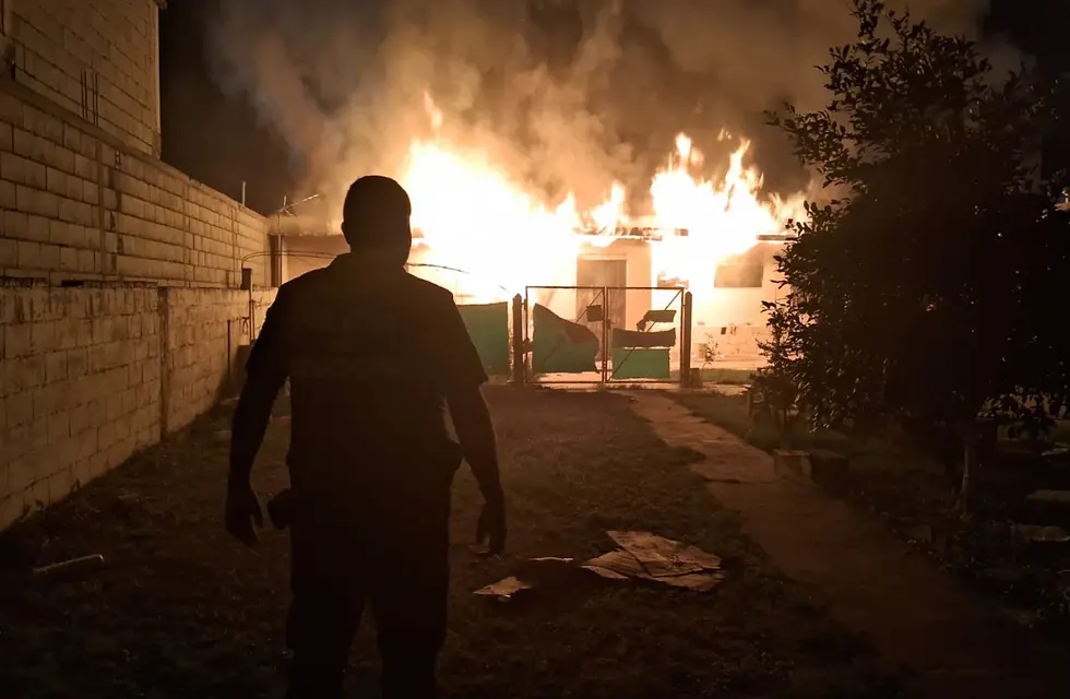 Bomberos voluntarios sofocaron las llamas, aunque aparentemente fue una destrucción total.