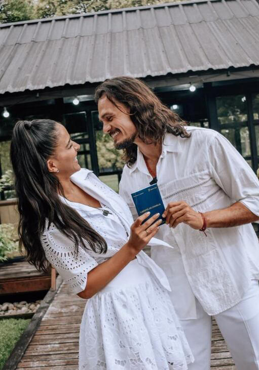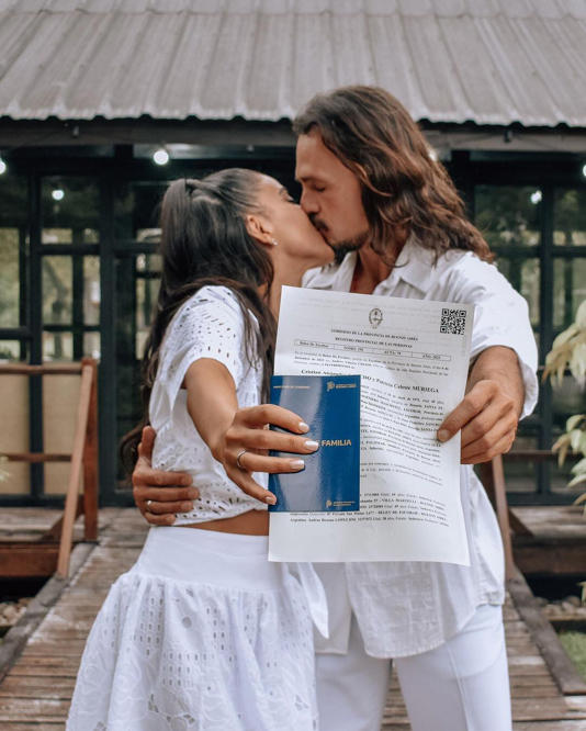 Minutos antes ella dijo “Amor, último camino de solteros. Y tarde. Nos estamos yendo a casar, con algunos inconvenientes, 45 minutos tarde, no es tanto. Que nos reciba la jueza”. De este modo pasaron a ser familia.