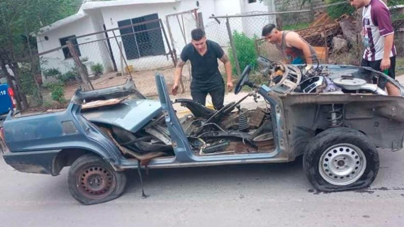 El dueño manifestó que al llegar al domicilio encontró el auto “descuartizado”, lo cortaron por la mitad y lo estaban desmantelando.