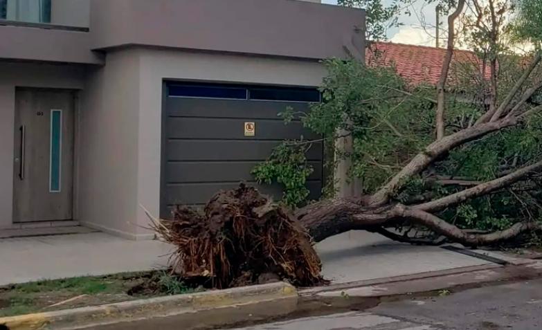 En traslasierras un fuerte viento causo destrozos, caídas de árboles, voladuras de techos y cortes de tendido eléctrico.