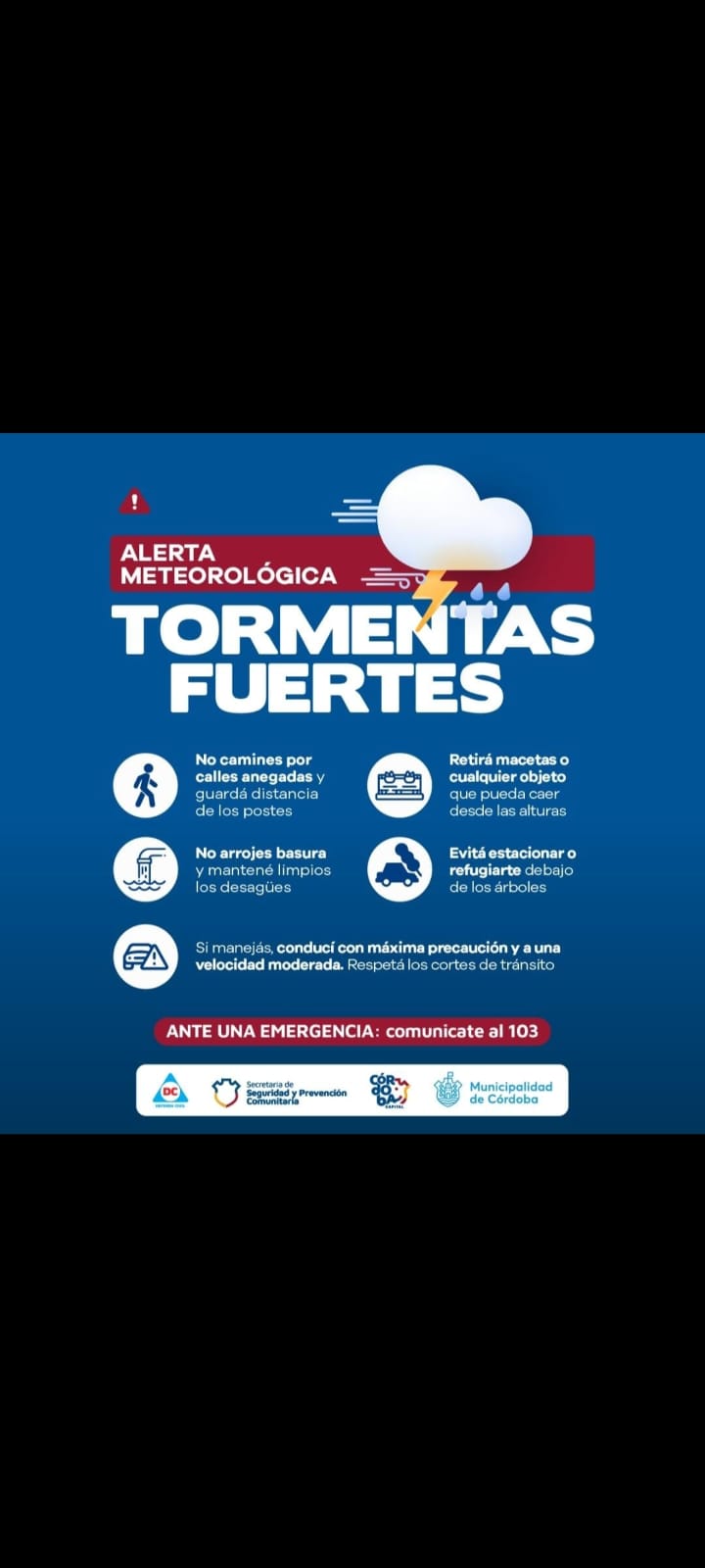 El Servicio Meteorológico Nacional, emitió una alerta a corto plazo para las Ciudad de Córdoba y localidades como Calamuchita, Rio Cuarto, San Javier.