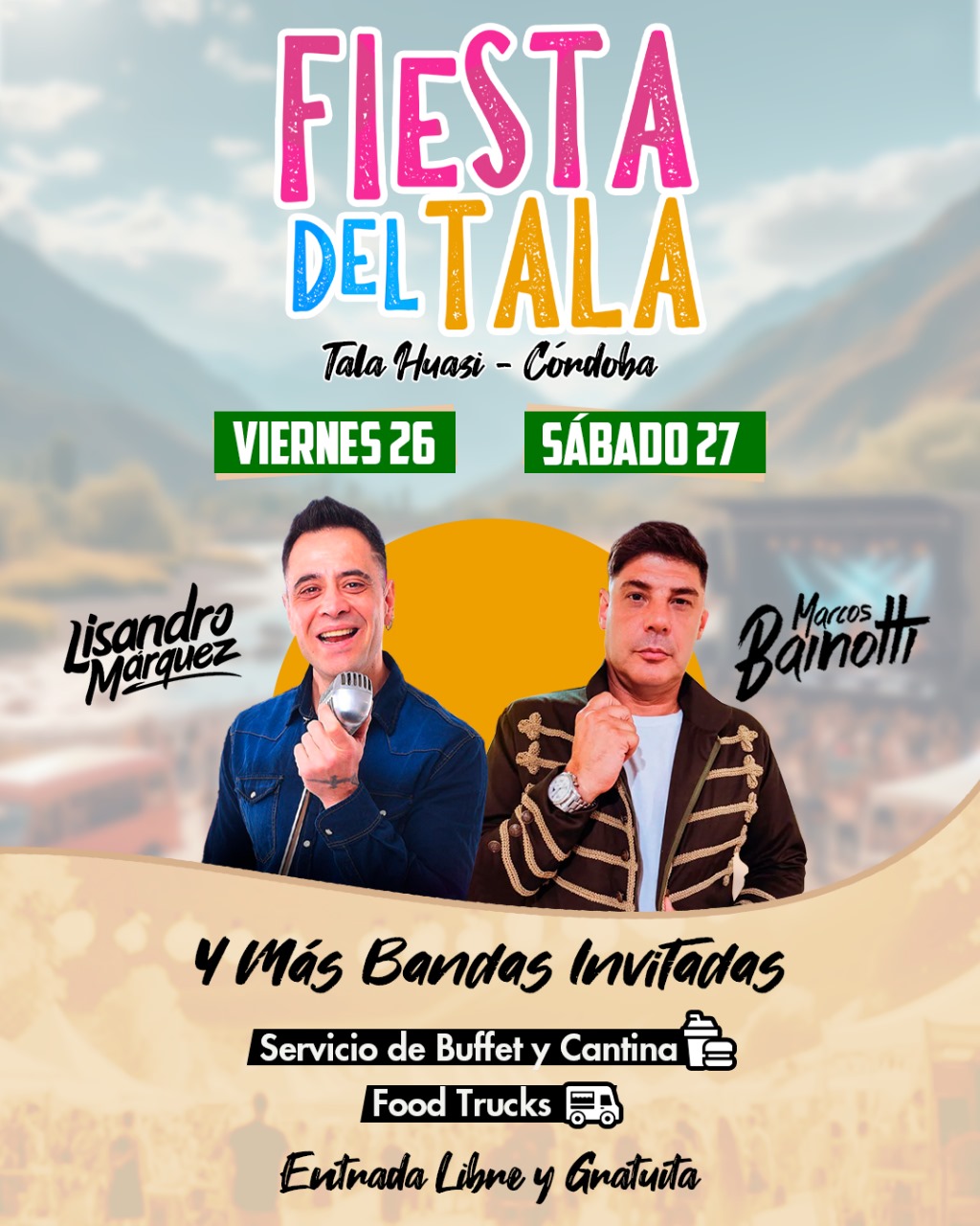 Lisandro Márquez y Marcos Bainotti serán números principales de los días y lo acompañarán bandas de cumbia, cuarteto y grupo folclórico invitados.