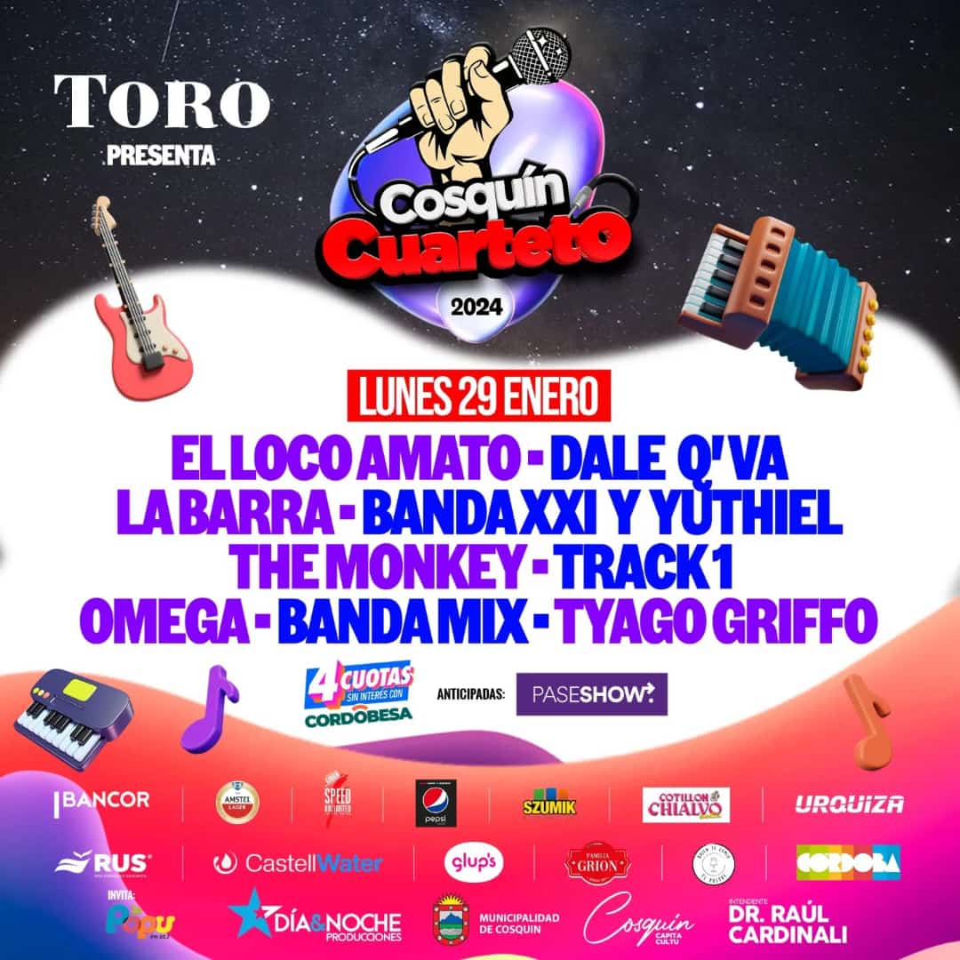 Comienza una nueva edición del Cosquín Cuarteto, que se llevará a cabo dos días seguidos, lunes 29 y martes 30, en la Plaza Próspero Molina.
