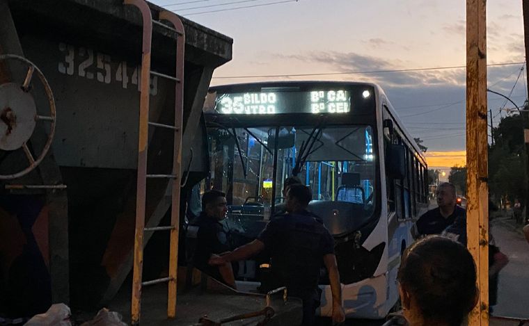 Un colectivo de la línea 35, interno 1296, de la empresa de Tamse chocó con un tren de carga de soja.