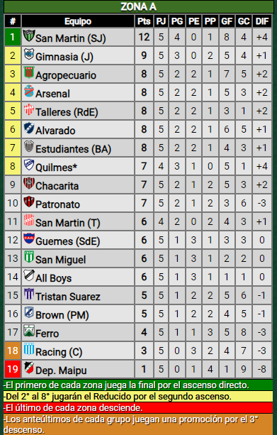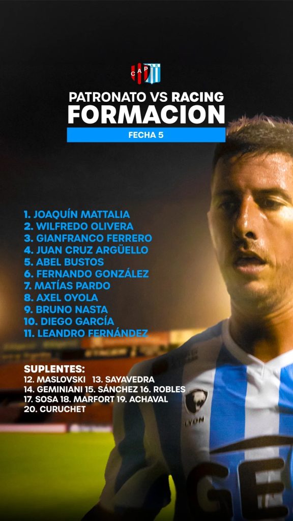 Racing se encuentra hundido en la tabla de posiciones de al zona A en el puesto 18. 5 partidos jugados con 3 empates, 2 derrotas y 0 victorias con solo 3 unidades. Por su lado, Patronato por el momento se encuentra en la posición 10 con 7 pts dado a 2 ganados, 1 empatado y 2 perdidos.