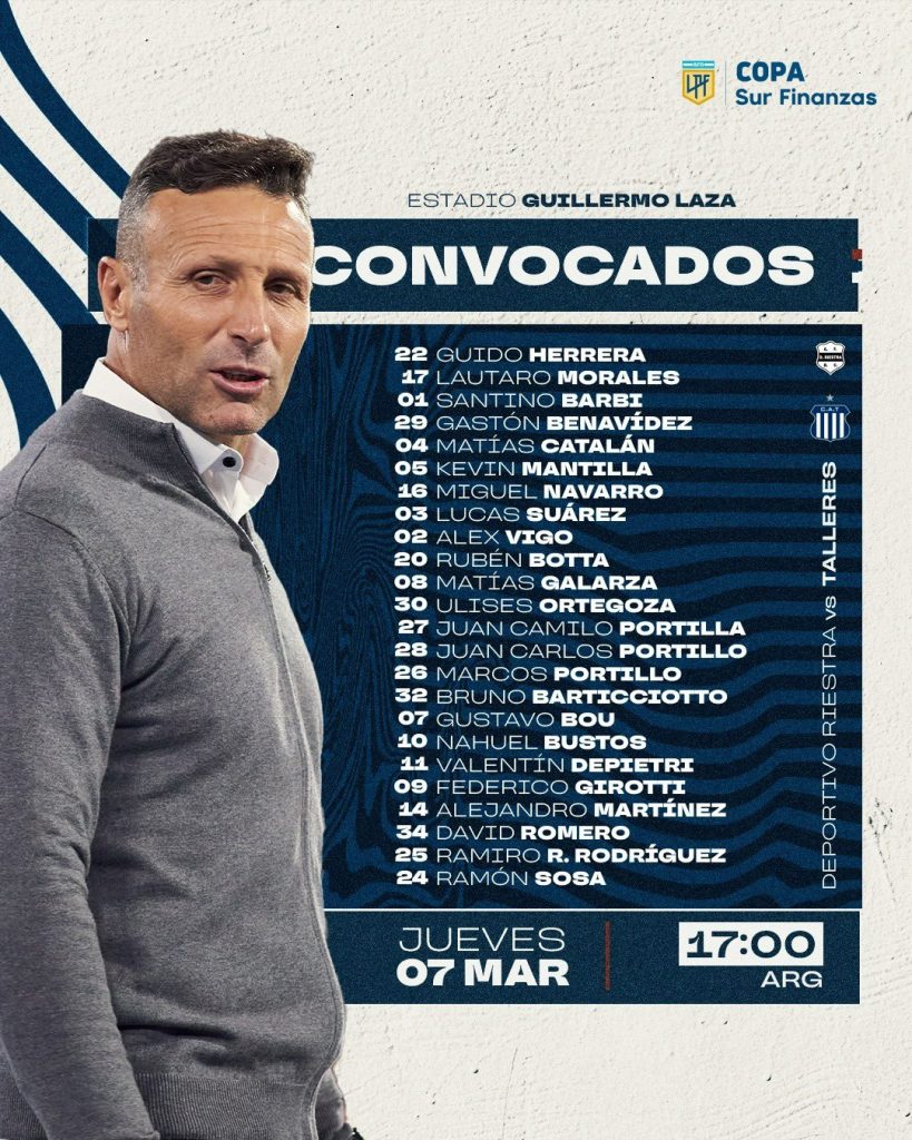 En la lista de convocados por “Tino”, con respecto al último partido ingresan Santino Barbi y Marcos Portillo. Salen Juan Rodríguez (lesión) y Luis Sequeira.
