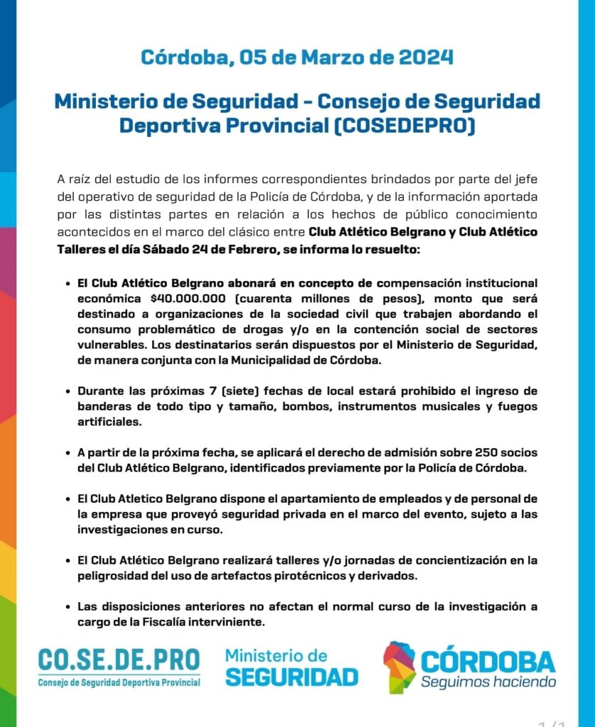 El encuentro se disputará con los hinchas Piratas, los cuales no podrán colgar ninguna bandera, ni tampoco tener instrumentos musicales tras la sanción del COSEDEPRO por los fuegos artificiales tirados vs talleres.