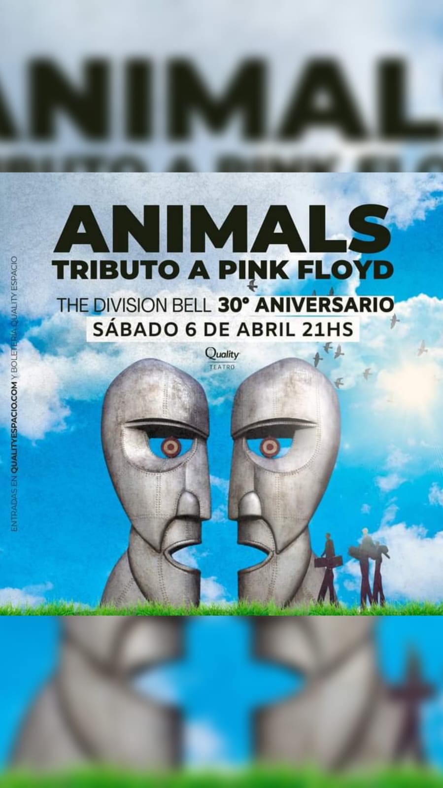 Este sábado 6 de abril, la banda tributo a Pink Floyd, Animals se estará presentando en Quality Teatro, para festejar los 30 años del disco “The Division Bell” y sus más grande éxitos.