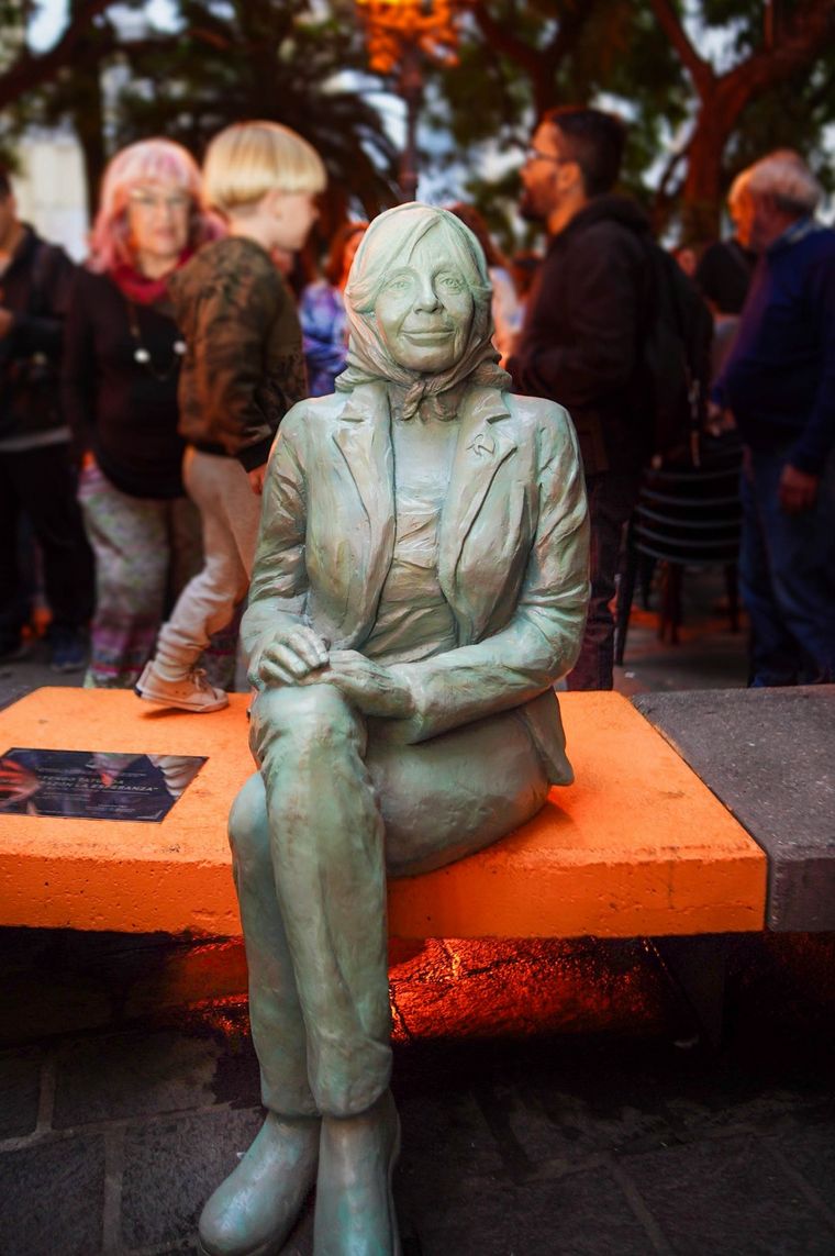 Este martes se inauguró una escultura en honor a Sonia Torres, Presidenta histórica de Abuelas en Córdoba, se realizó en la Plaza de la Merced, frente a la casa de la organización.