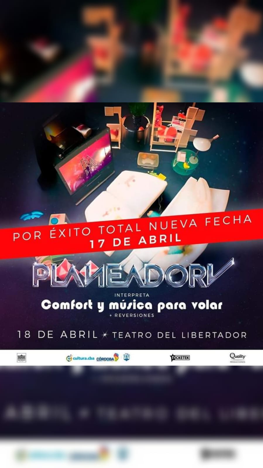 17 y 18 abril, Planeador V se estará presentando en el Teatro Libertador para celebrar su aniversario número 18 repasando el disco completo de “Comfort y Música para Volar”, además de recorrer los grandes hits de Soda Stereo.