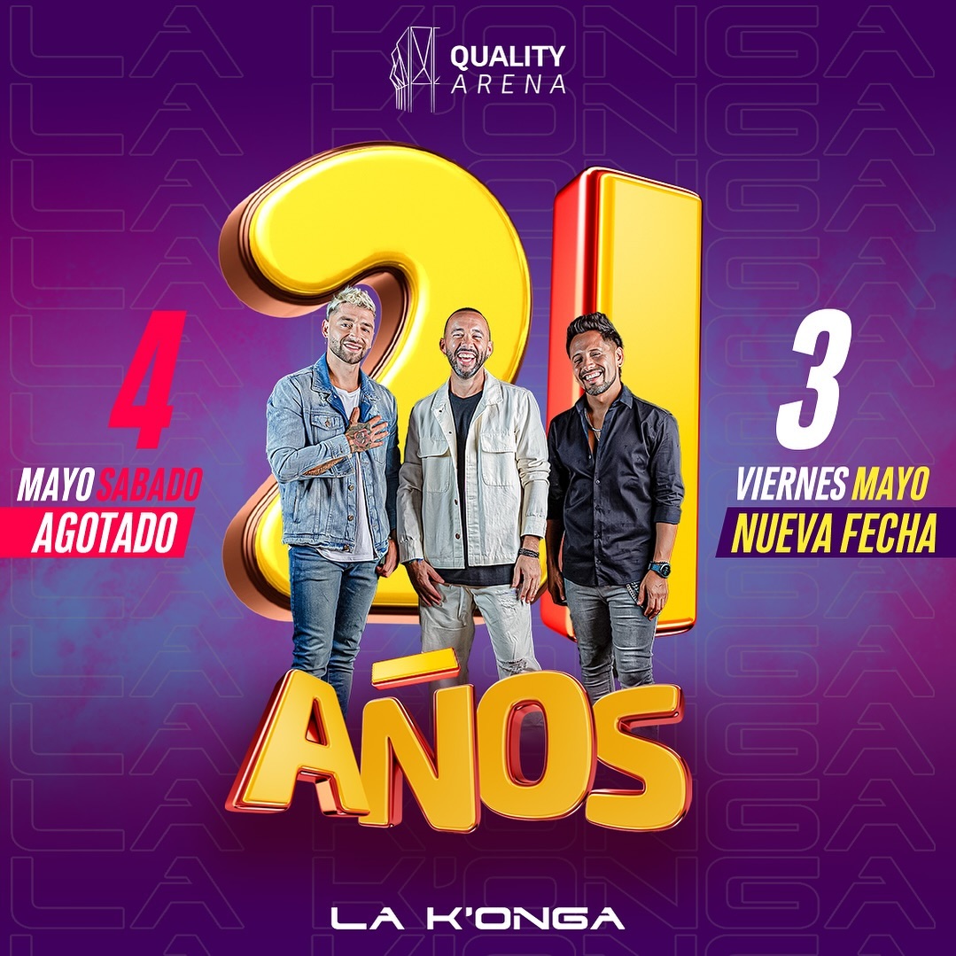 3 y 4 de Mayo, La Konga festejara su aniversario número 21 en el Quality Arena.