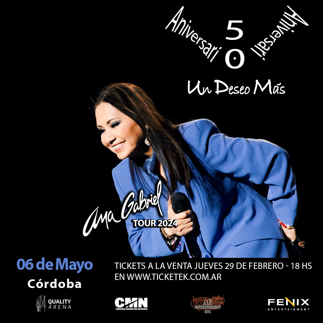 El lunes 6 de mayo, la artista mexicana, Ana Gabriel se estará presentando en el Quality Arena con su nuevo tour “Un deseo más”, donde festejará su 50° aniversario con la música, con la producción de Fenix Entertainment.