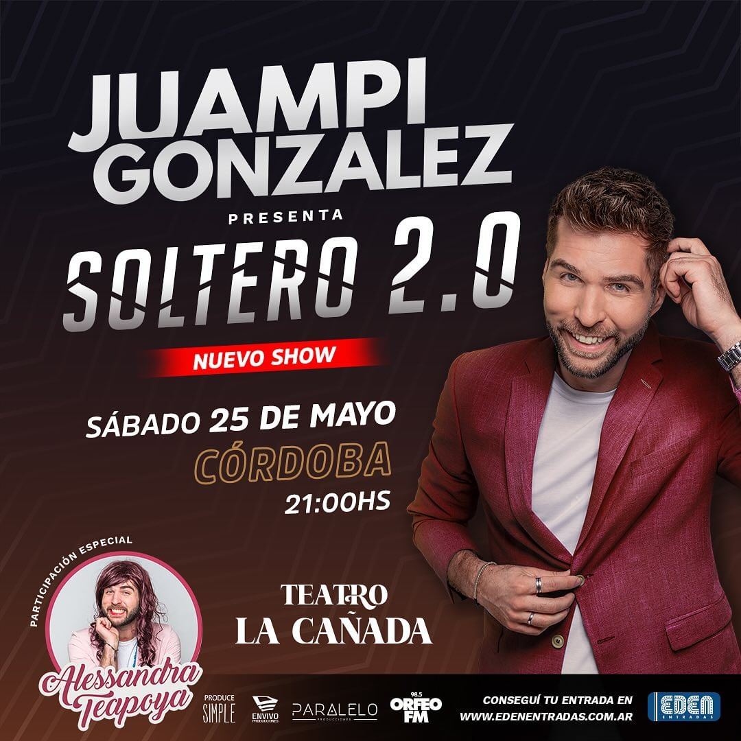 El sábado 25 de mayo, Juampi González estará presentando su show Soltero 2.0 en el Teatro La Cañada.