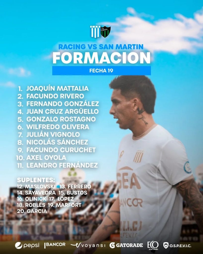 Racing y San Martin de san juan igualaron 0-0 en el estadio Miguel Sancho por la fecha 19 de la Primera Nacional.