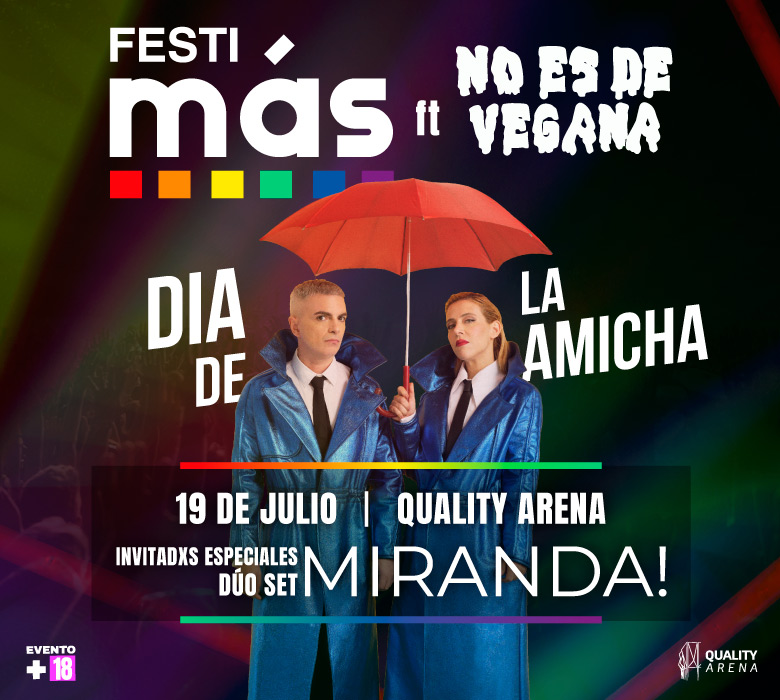 ¡Llega una nueva edición de Festi MÁS! El 19 de julio festejamos el Día del Amigx en Quality Espacio con la participación de Miranda! en formato dúo set.