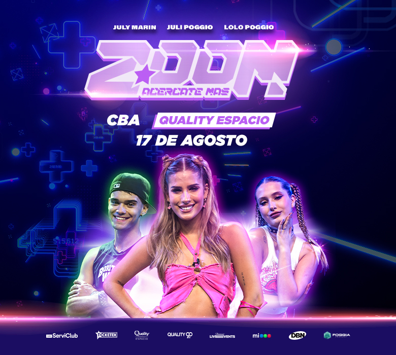 ZOOM, acércate más, llega por primera vez a Córdoba con Juli Poggio, Lolo Poggio y July Marín. El 17 de agosto en Quality Espacio vamos a vivir un show increíble lleno de música, baile y diversión.