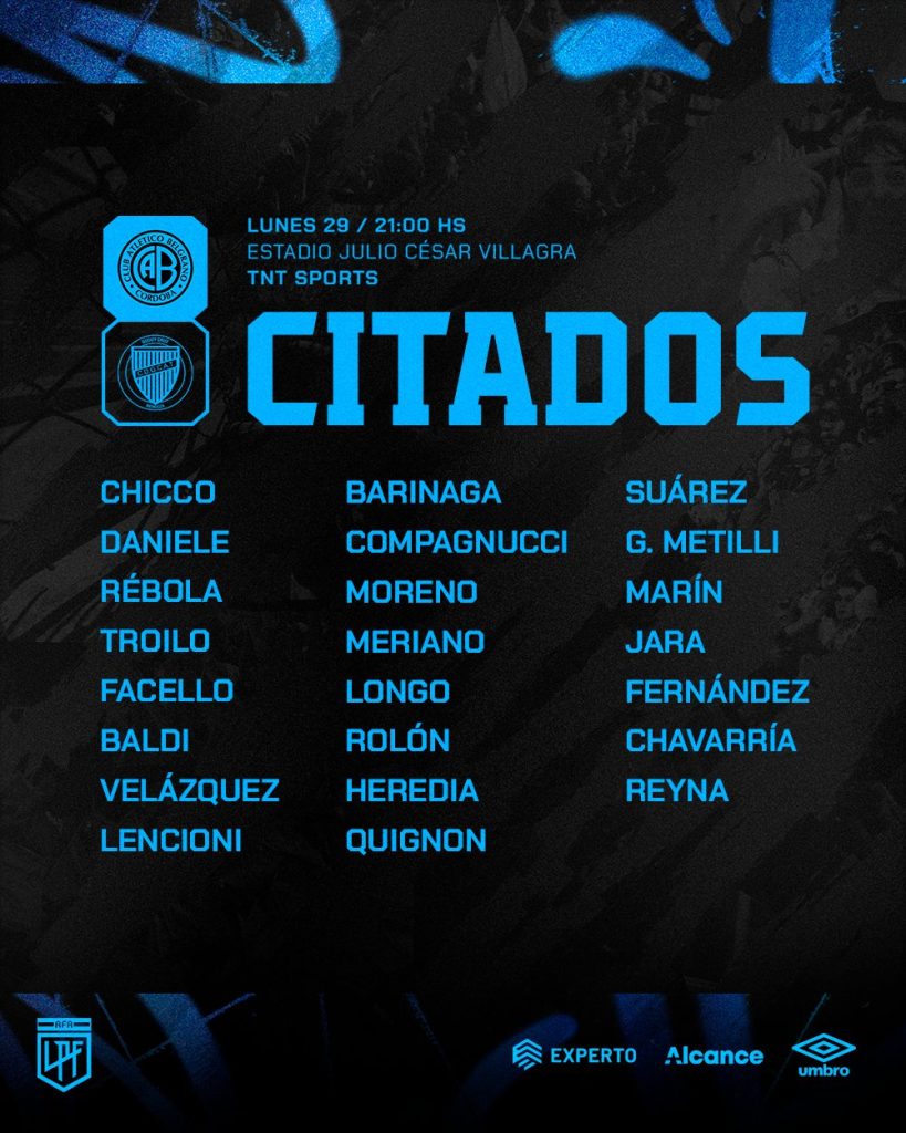 Respecto a la lista anterior salieron: Ignacio Tapia, Jeremías Lucco y Lucas Bustos. En su lugar ingresaron: Facundo Quignon, Matías Marín y Facundo Lencioni.