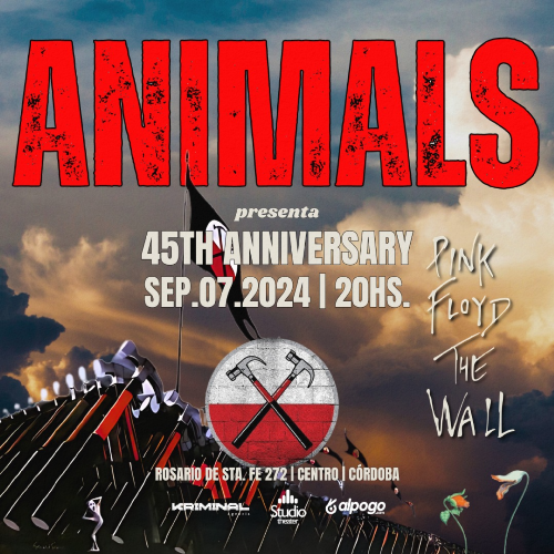 La banda cordobesa tributo a Pink Floyd estara celebrando los 45 años del disco mas emblemático de la historia, “The Wall”, en donde se destacan canciones como, “Goodbye Blue Sky”, “Another Brick in the Wall”, “Hey you”, “Is There Anybody Out There?”, “The Show Must Go On”, “Stop”, “The Trial”, entra otras.