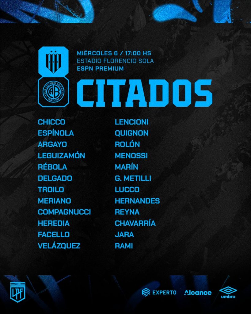 Belgrano llega a este encuentro con una baja de peso y es la de Nicolás “Uvita” Fernández quien sufrió una lesión en el dedo de su pie izquierdo.