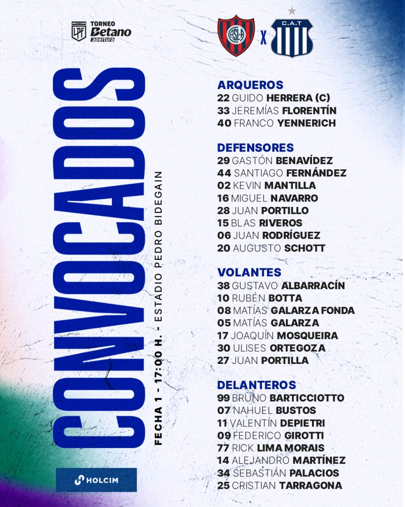 Por la fecha 1 de la Copa de la Liga – Apertura 2025, Talleres visita está tarde a San Lorenzo desde las 17 hs bajo el arbitraje de Juan Pafundi.
