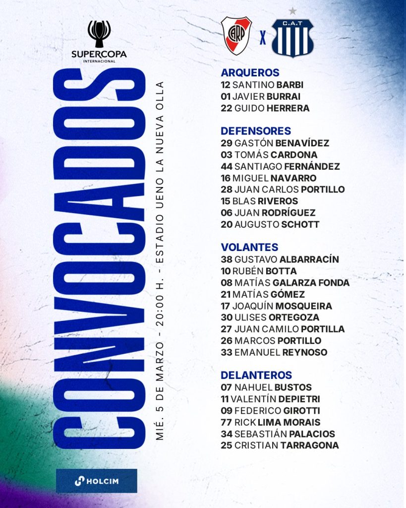 Desde las 20.00 hs Talleres y River jugarán la final de la Supercopa Internacional en Asunción, Paraguay. El estadio La Nueva Olla de Cerro Porteño será el escenario donde se enfrentarán la “T” y el “Millonario”. Nicolás Ramírez será el árbitro que impartirá justicia.