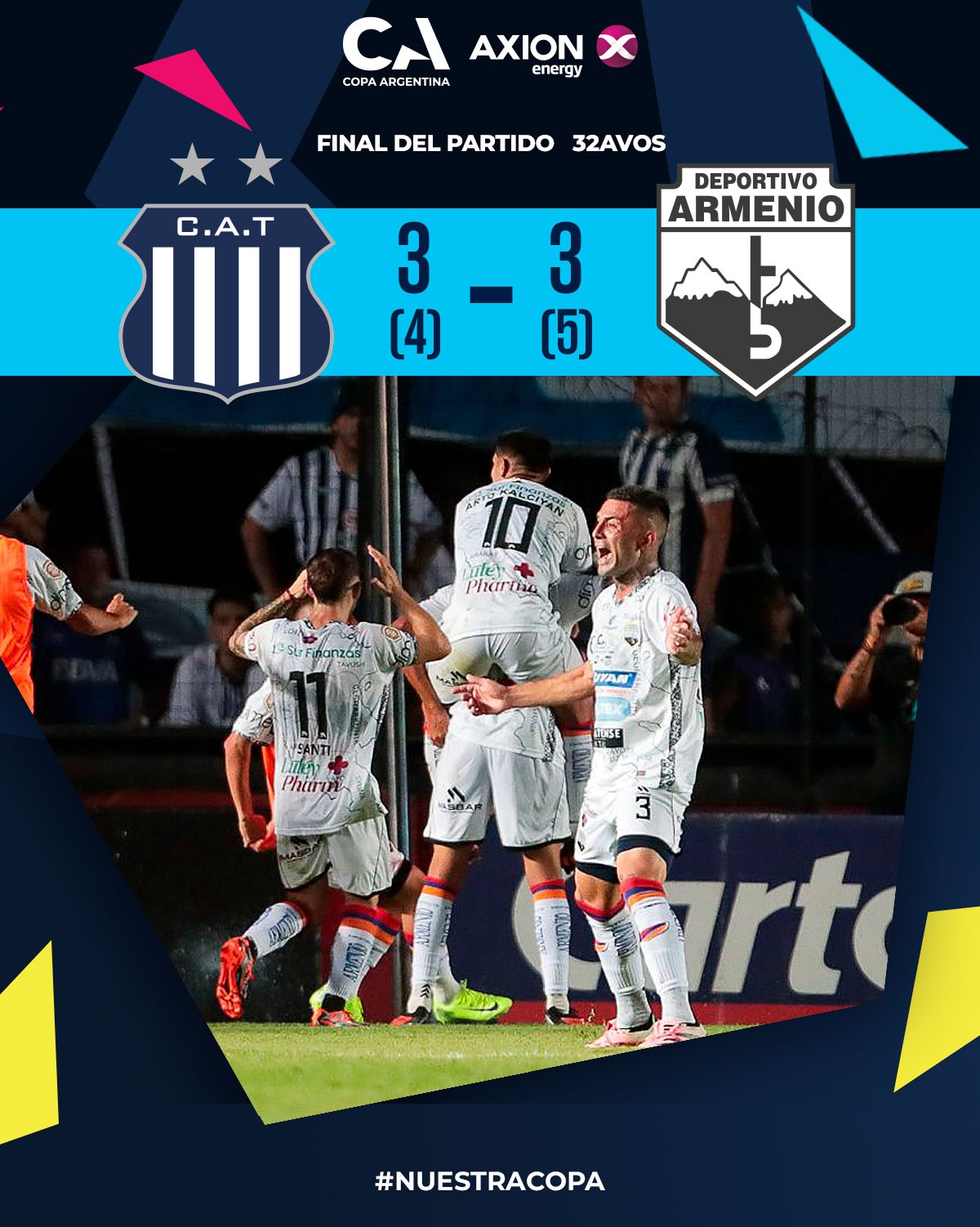 En los penales, el penal decisivo, lo falló Juan Portillo, la pelota dió en el poste y el próximo jugador de Armenio metió el último penal y la tanda de penales fue para el equipo de otra categoría. Armenio ganó 5 a 4 y Taller