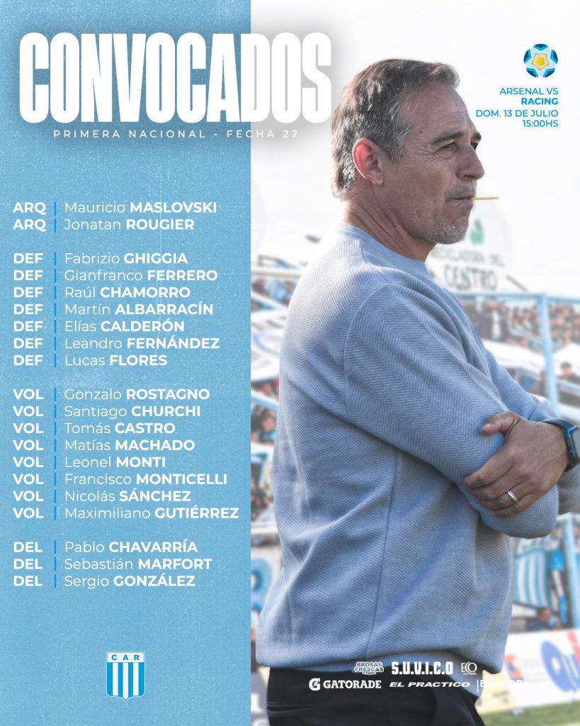Racing visita a Arsenal por la fecha 22 de la Primera Nacional, Necesita un triunfo para entrar al reducido y su rival también si no quiere seguir hundiéndose en la tabla.