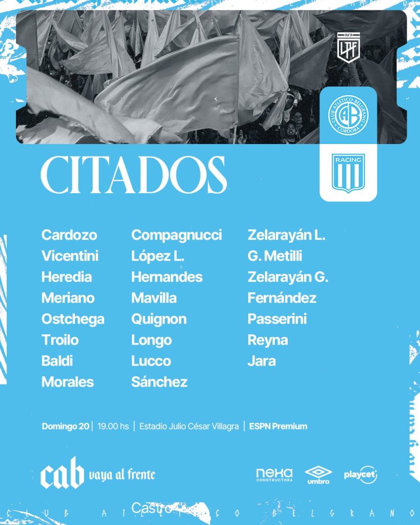 Belgrano regresa a Alberdi, tras 85 días para enfrentarse ante Racing Club, desde las 19:00 hs.