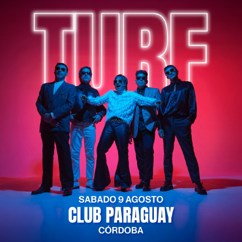 Turf se presentará el próximo 9 de agosto en el Club Paraguay ,promete ser una noche llena de buena música y diversión. Reconocidos por su estilo fresco y pegajoso, Turf se ha ganado un lugar especial en el corazón del público argentino con sus hits que combinan rock, pop y toques de funk.