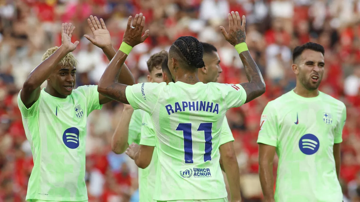 Por la primera jornada de La Liga , el conjunto culé goleó 3 a 0 al Mallorca de visitante con goles de Raphinha, Ferran Torres y Yamal.