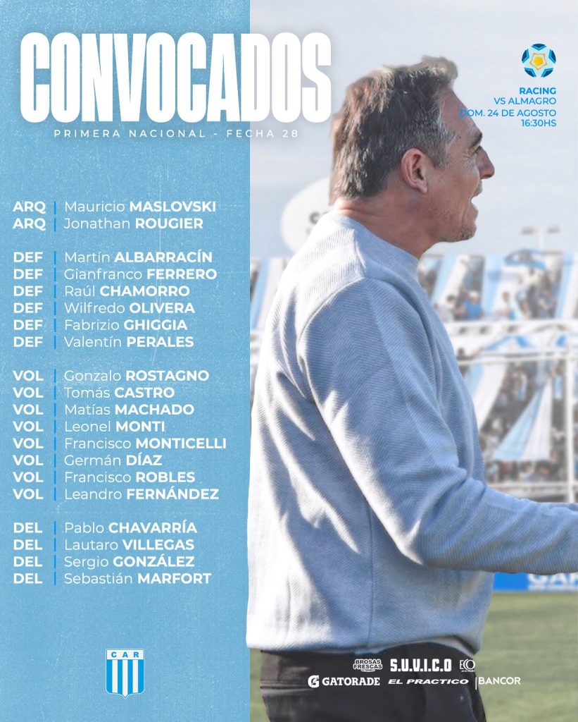 Racing tendrá a estos jugadores para enfrentar a Almagro: