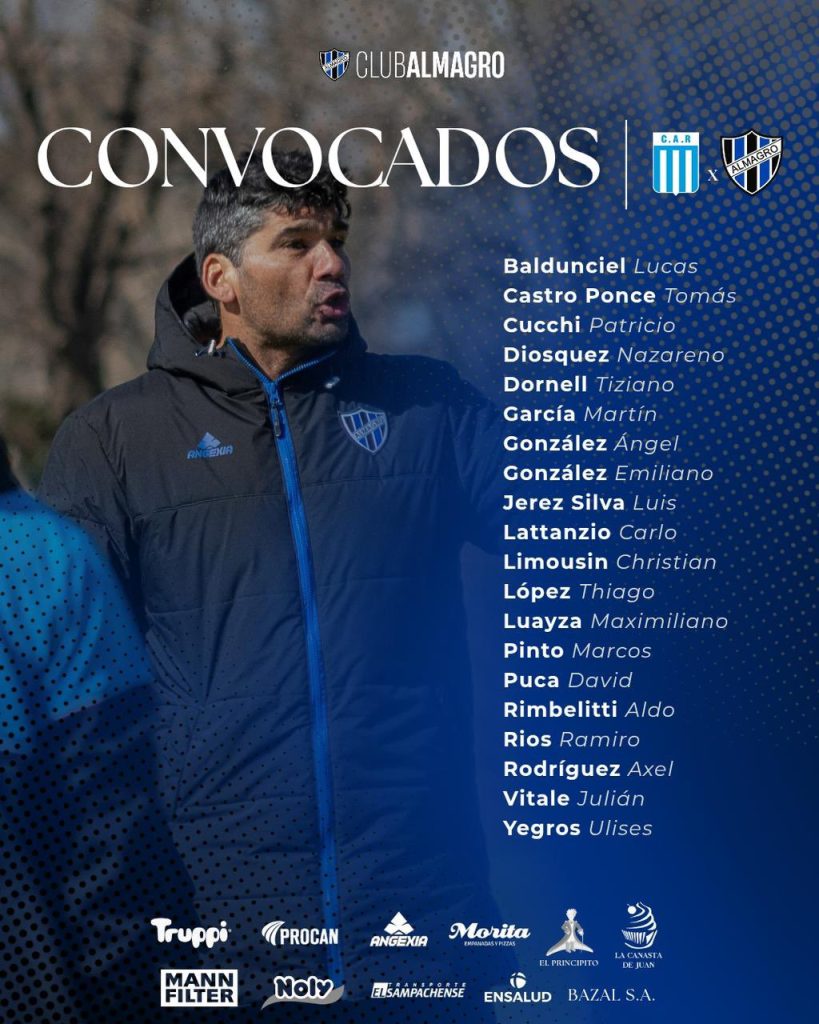 Almagro llevará estos jugadores a Córdoba para enfrentar a Racing: