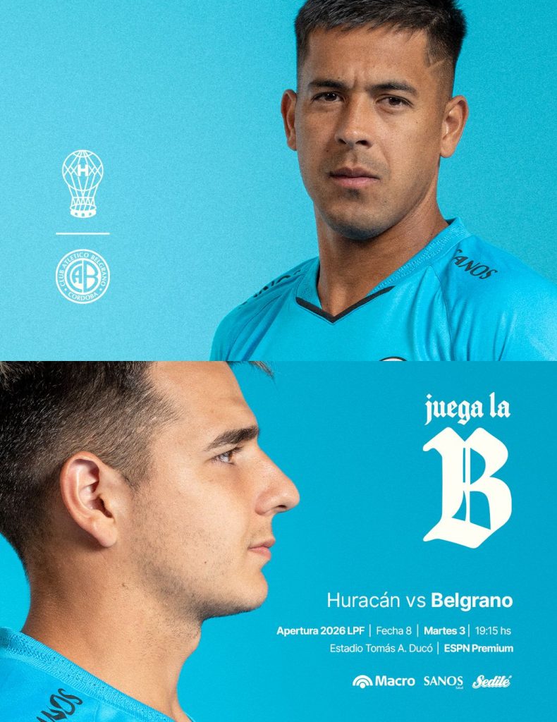 Belgrano visitará a Huracán este martes 3 de marzo a las 19:15 en el Estadio Tomás Adolfo Ducó, por la fecha 8 del Torneo Apertura 2026. El encuentro será televisado por ESPN Premium y tendrá como árbitro principal a Ariel Penel, acompañado por Hugo Páez y Gisela Trucco como asistentes, Kevin Alegre como cuarto árbitro, y Laura Fortunato junto a Diego Verlotta en el VAR.