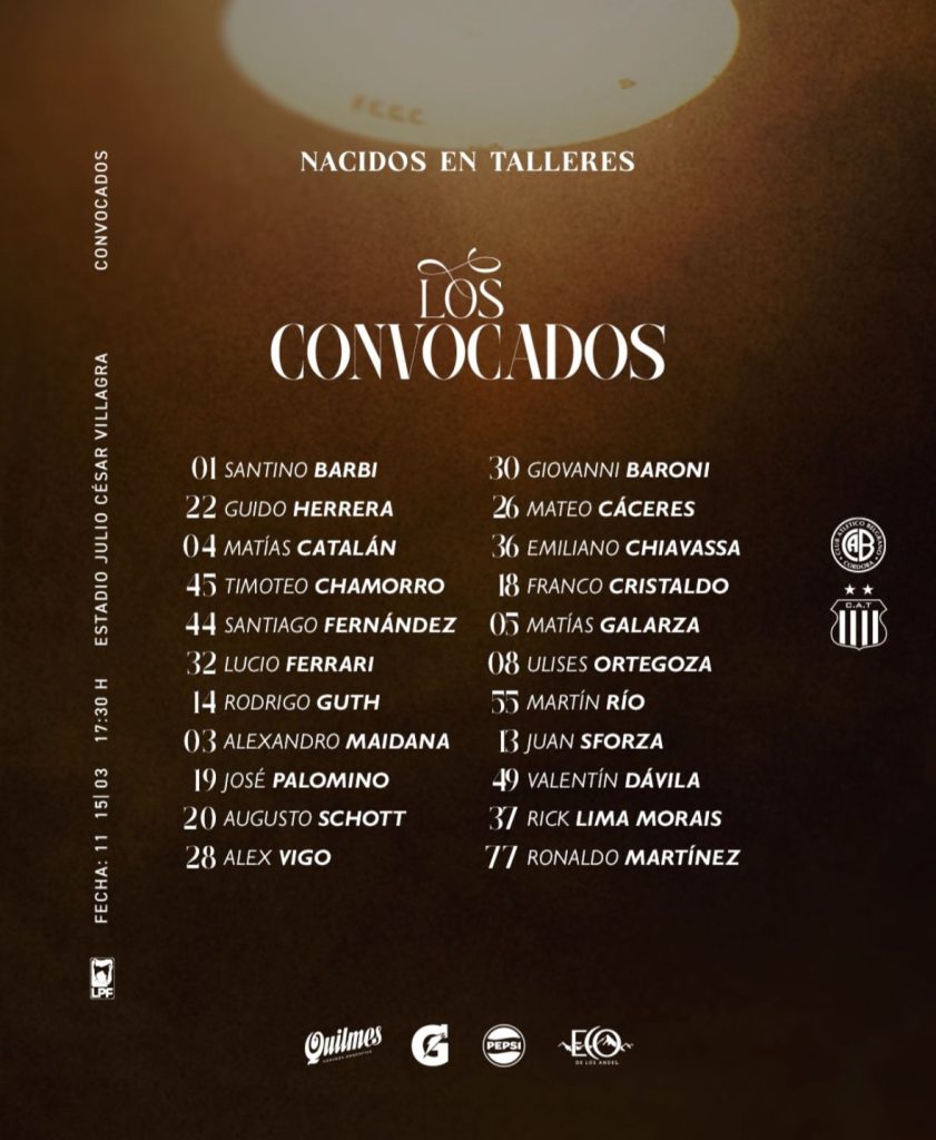 La probable formación de Talleres vs. Belgrano, por el Torneo Apertura